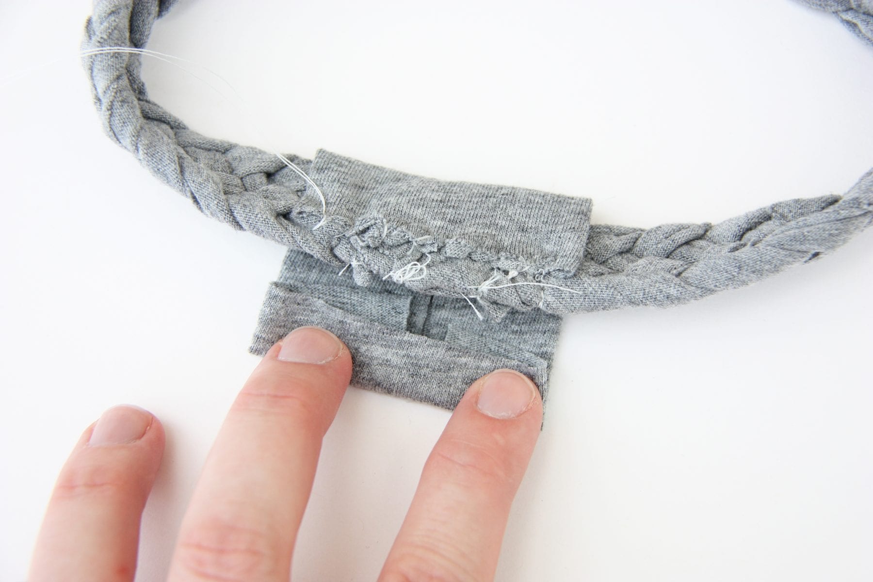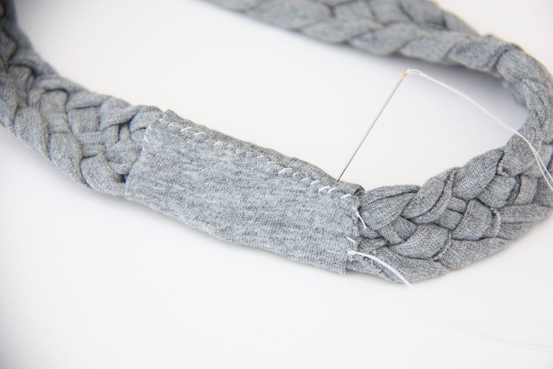 Sew the ends of the braid to either end of the elastic. If you have a sewing machine make sure you do two rows of stitching on each side for the extra reinforcement.